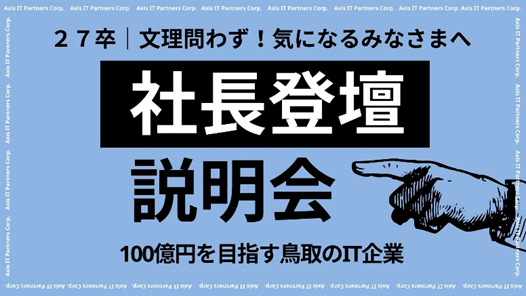 この度、アクシスITパートナーズ株式会社は、2027年卒以降の学生の皆さんを対象に、社長自らが登壇する「1日限定の特別イベント」を開催いたします。