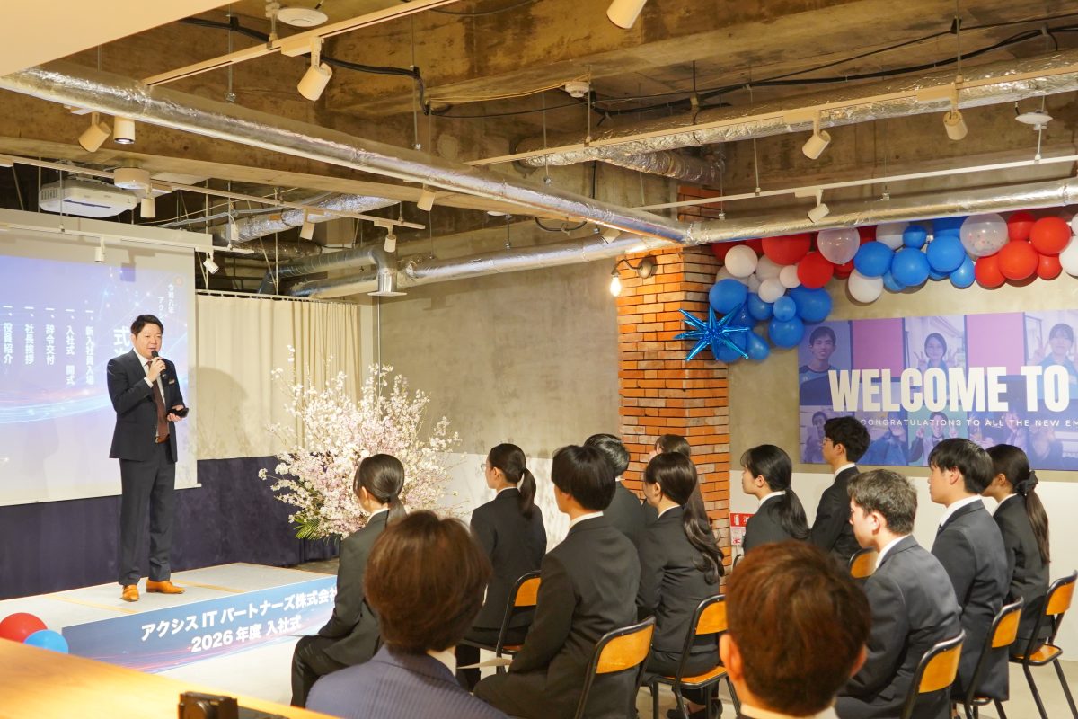 当社は昨年上場を果たしましたが、本日付けで山形県の株式会社ソネットと吸収合併を行い、新たに「アクシスITパートナーズ 山形オフィス」の仲間を迎えました。